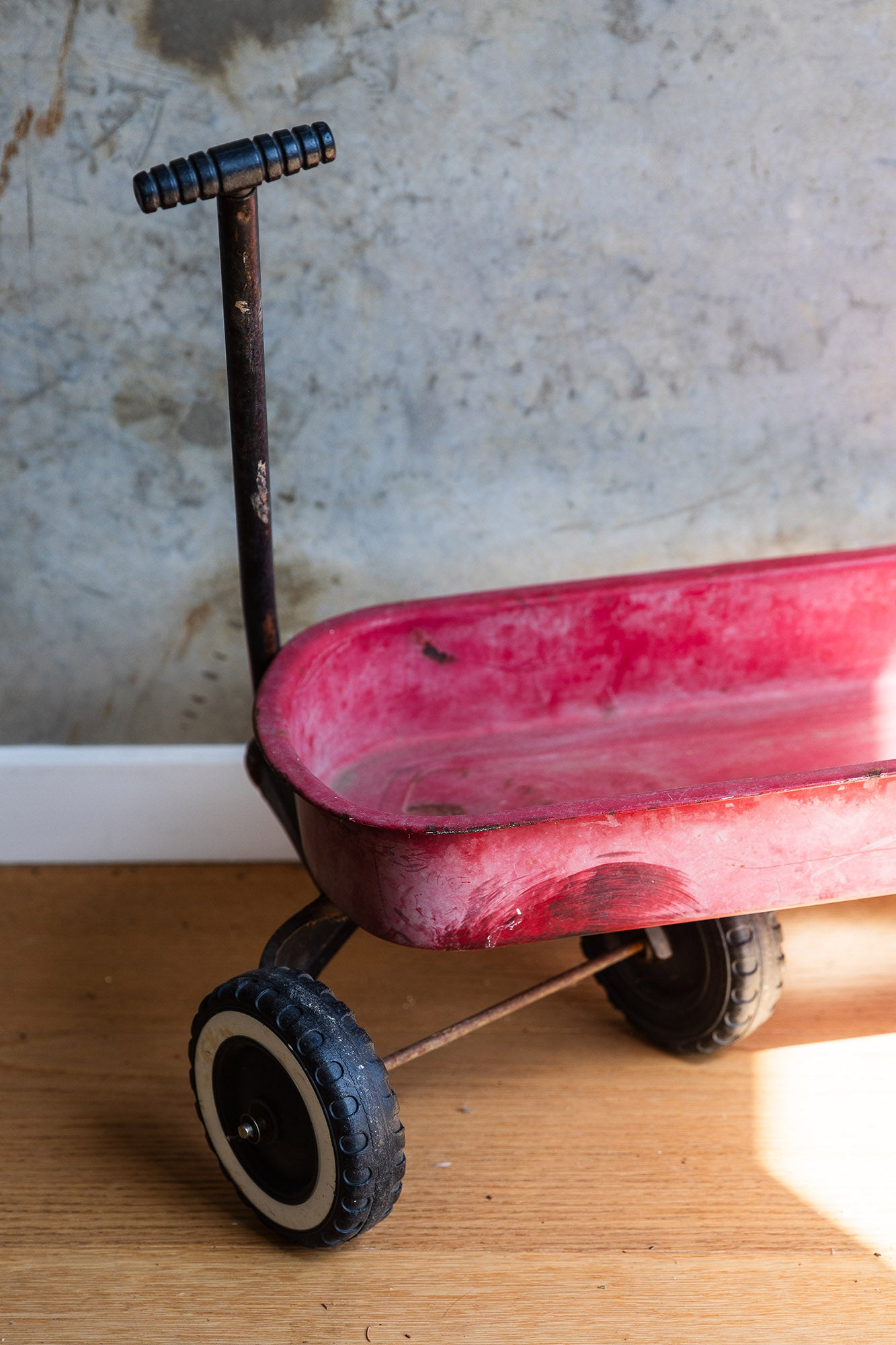 The sweetest little vintage trolley, ideal for storing and displaying your little one's cherished toys. This charming piece brings nostalgic appeal to any playroom or bedroom while offering practical storage in a compact, mobile design. Perfect for keeping toys organised and within easy reach.